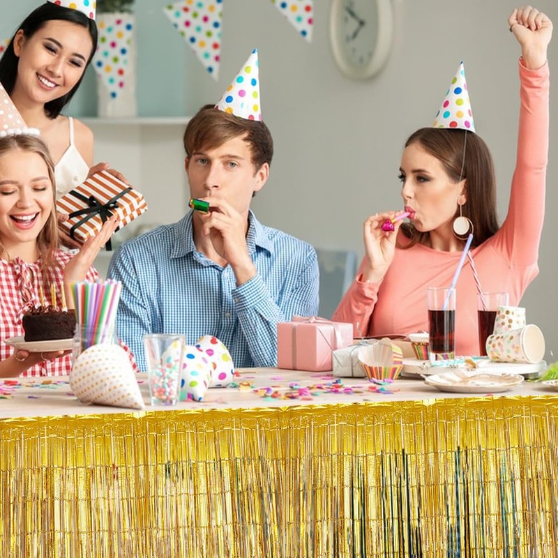AHANDMAKER 4Pack Metallic Foil Fringe Tinsel Table Skirt for Rectangle Table,...