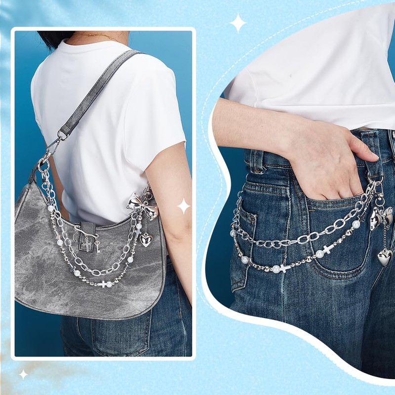 - Cute Bag Charm Chain: Adorable bow pendant bag charms add a fashionable flair to handbags, tote bags, backpacks, or everyday purses. Express unique personality by decorating your favorite handbags with these silver bag charms and purse charms