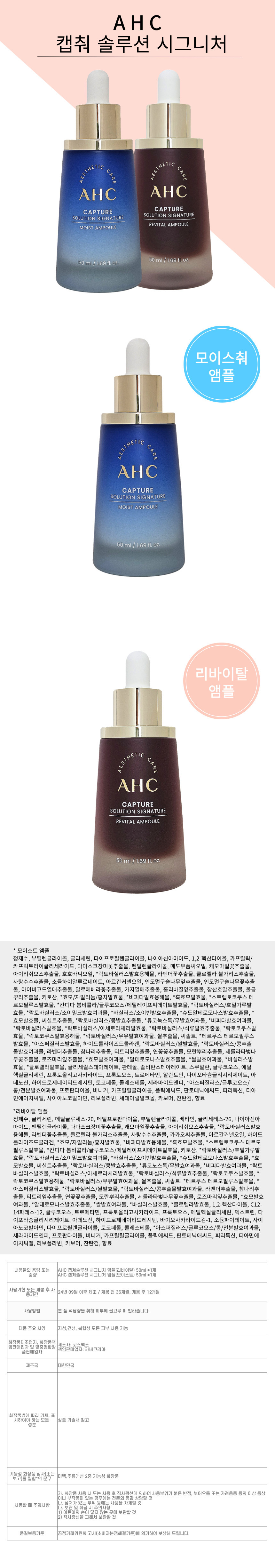 | Contents | AHC Capture Solution Signature Ampoule (Revital) 50ml, AHC Capture Solution Signature Ampoule (Moist) 50ml |