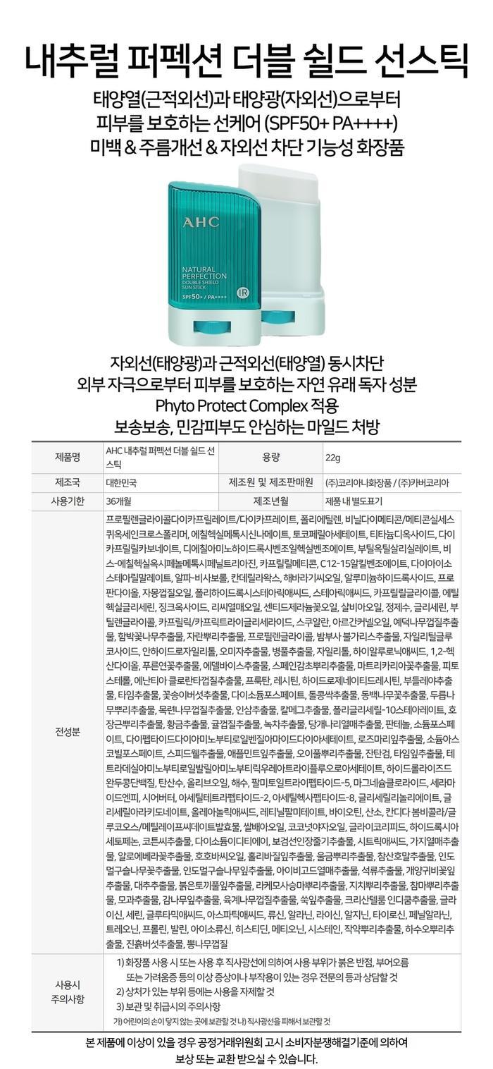 AHC AHC 내추럴 퍼펙션 더블 쉴드 선스틱 22g