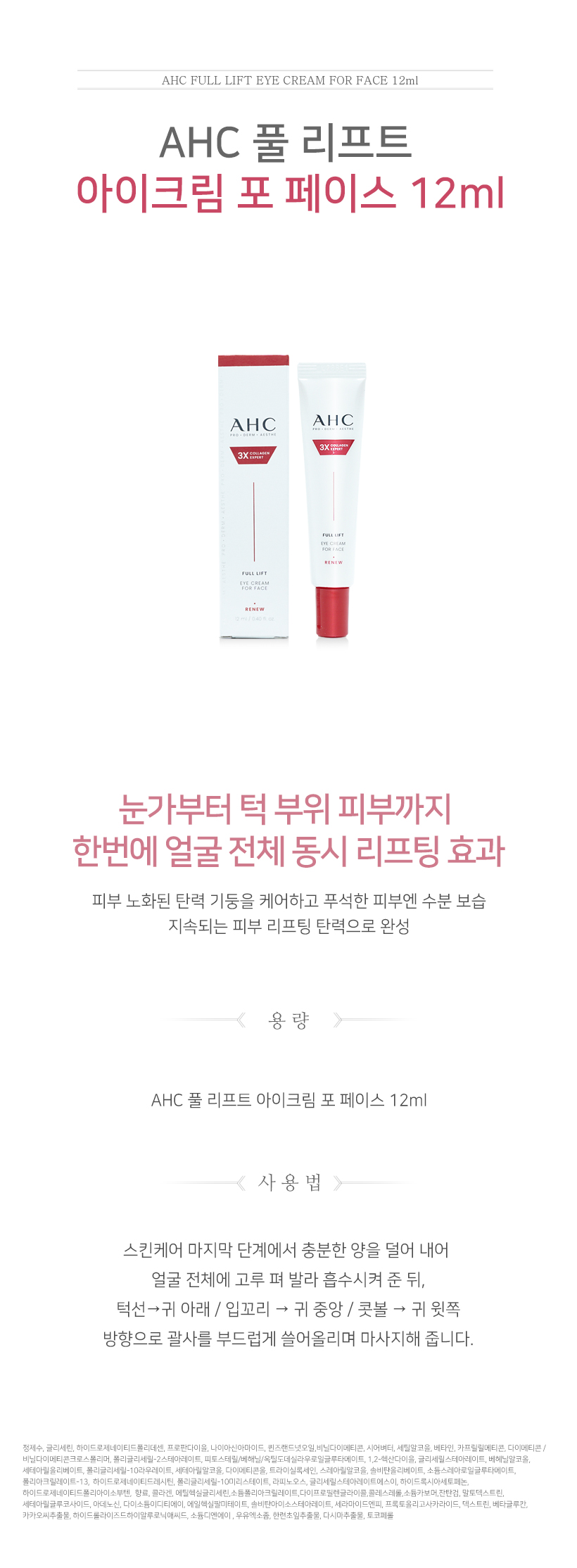 AHC 풀 리프트 아이크림 포 페이스 40ml x 4개 + 12ml
