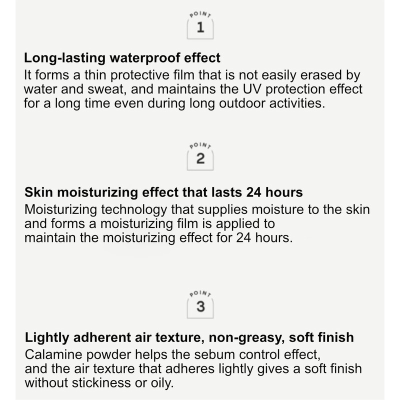- Lightly adherent air texture, non-greasy, soft finish