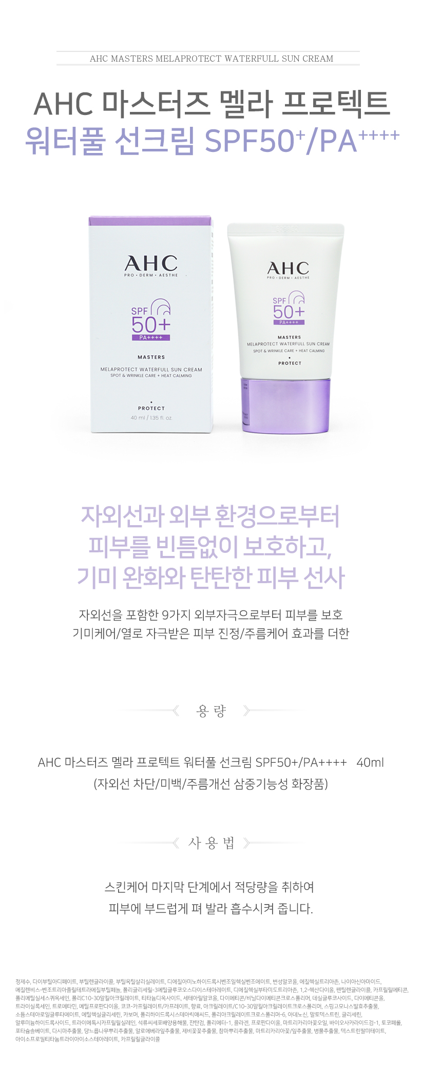 AHC Masters Mela Protect Waterful Sun Cream 40ml x 2 / AHC 마스터즈 멜라 프로텍트 워터풀 선크림 40ml 2개