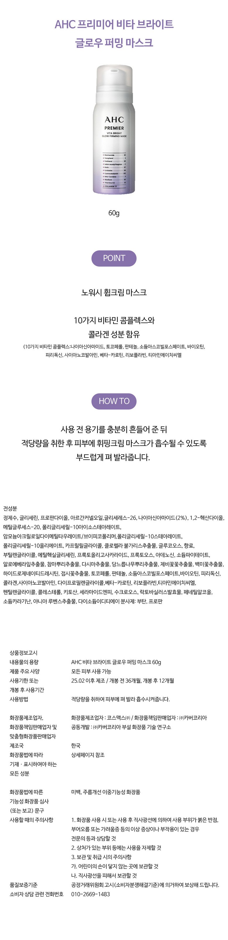 AHC 프리미어 비타 브라이트 글로우 퍼밍 마스크 60g 5개