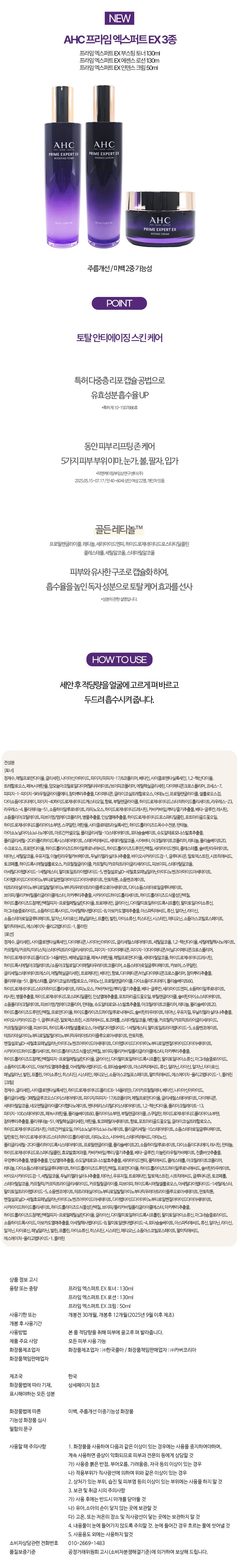 AHC 프라임 엑스퍼트 NEW EX 기초 세트 스킨+로션+크림+마스크팩 4매