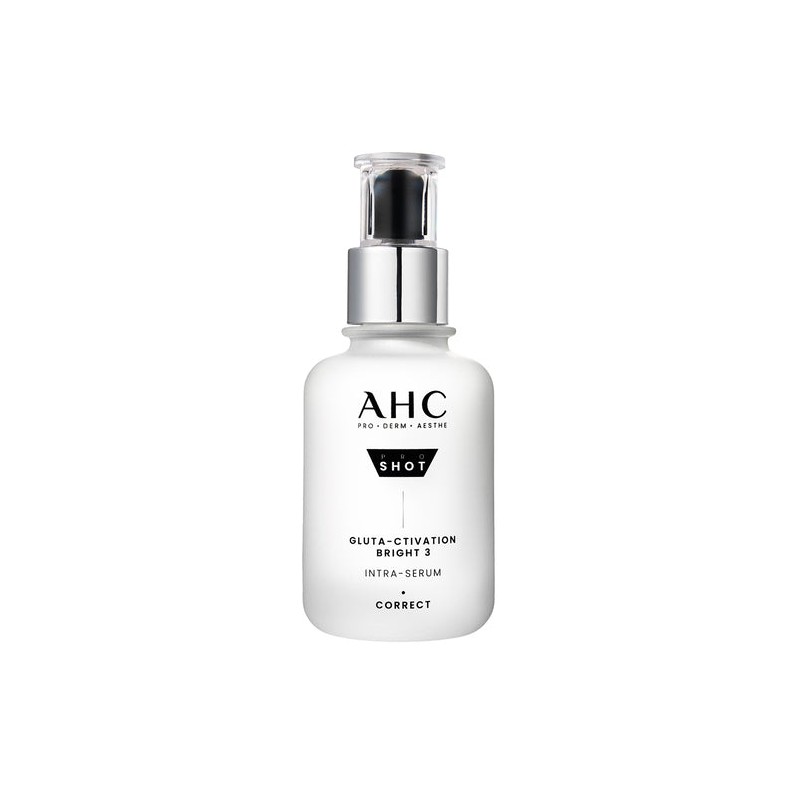AHC Pro Shot Gluta-ctivation Bright 3 Intra-Serum. Bright Pro-shot technology from Korea. A brightening serum that fades dark spots, blemishes, and freckles and revitalises the skin, transforming dull skin tone into a radiant pink glow in 4 weeks.