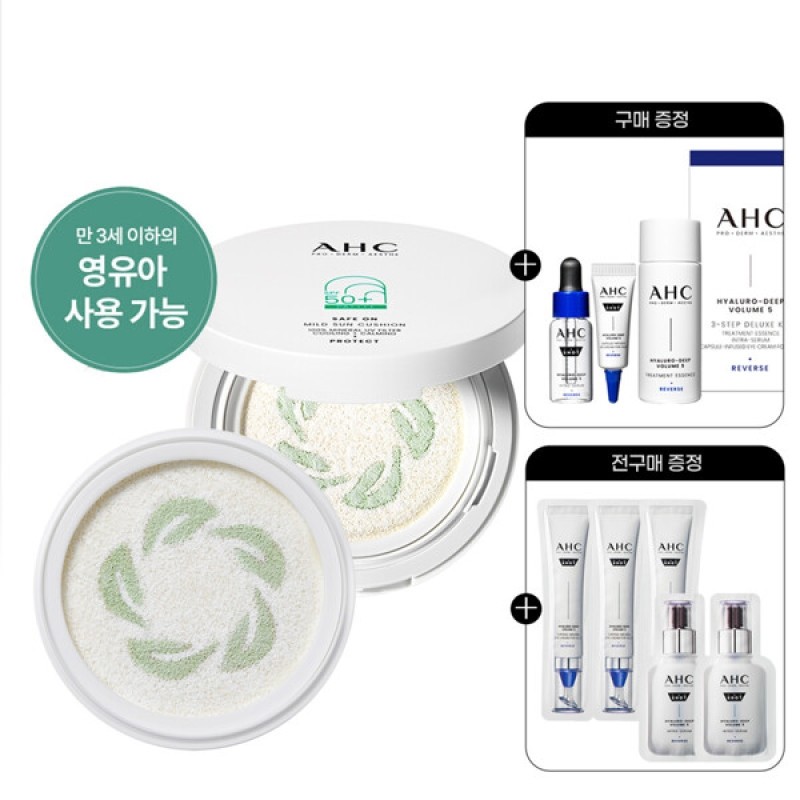 AHC Safe On Mild Sun Cushion (Main Product) 25g + Refill 25g + (Free) Deluxe Kit + Full Purchase Sachet / AHC 세이프온 마일드 선쿠션 본품 25g+리필 25g+(증정)디럭스키트+전구매 샤쉐