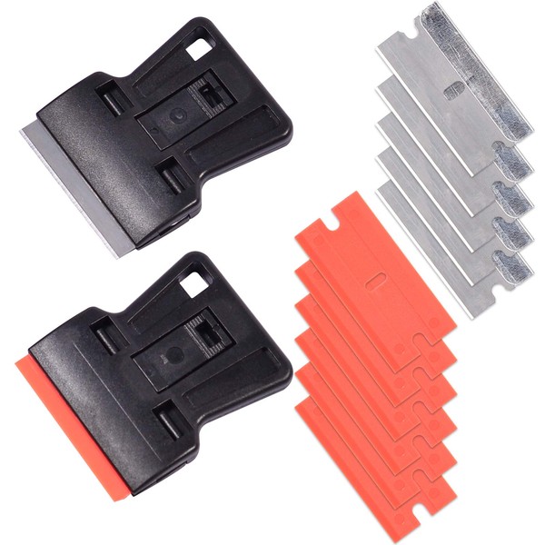 AHCHAY Portable 1.5inch Mini Metal Razor Scraper and Plastic Scraper with Blades, Putty Knife Set Removing Glue, Stain, Vinyl, Labels, Stickers, Decals, Pack of 2