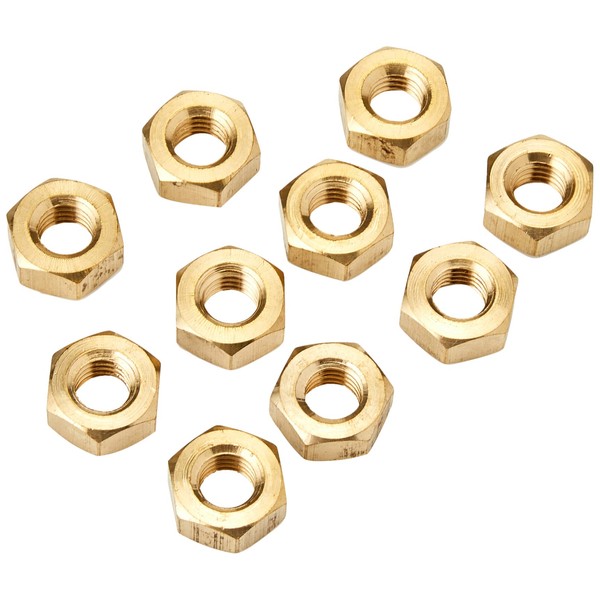 AHCMetric Hexagonal (Hex) Full Nuts Brass Self Colour M10 10mm (Pack of 10 Nuts)