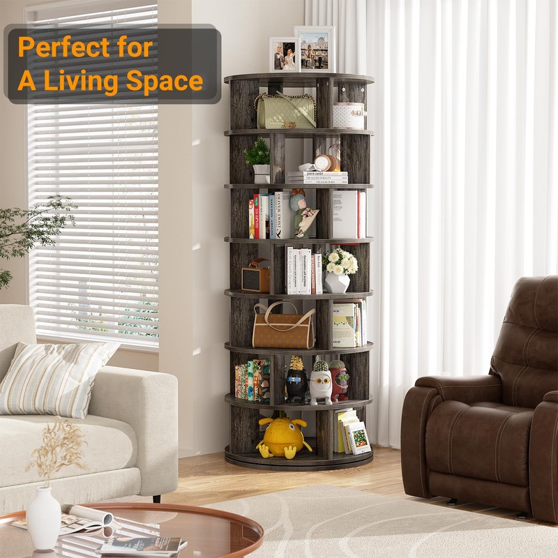 Aheaplus Rotating Shoe Rack Tower, 7-Tier Spinning Shoe Rack 360 Revolving Shoe Rack Organizer for Closet, Display Round Storage Carousel Shoes Closet Organization, Grey Oak
