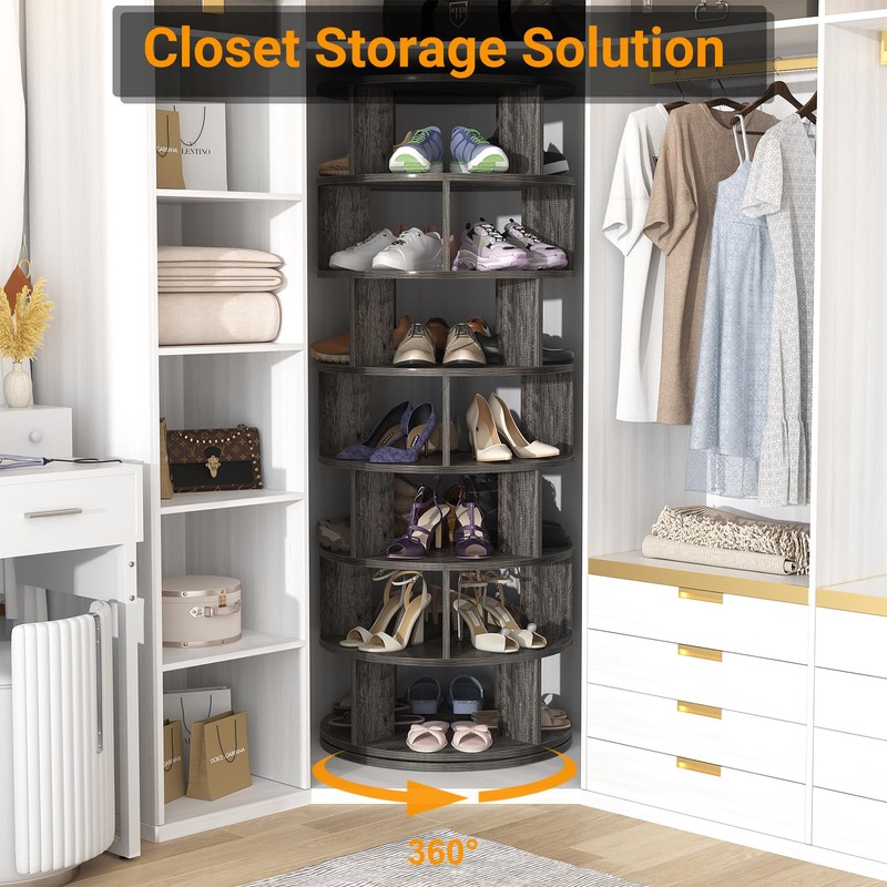 - Tired of searching for the perfect pair of shoes in a cluttered closet? Say hello to the Rotating Shoe Rack - your ultimate solution for effortless organization and easy access to your footwear collection