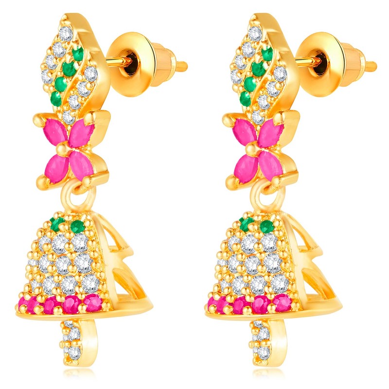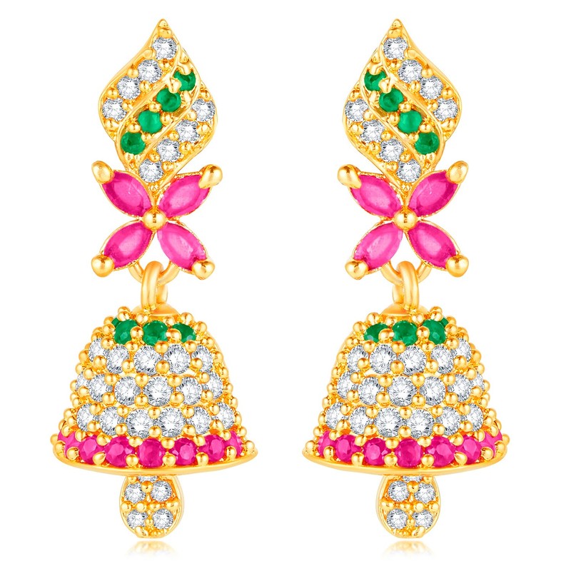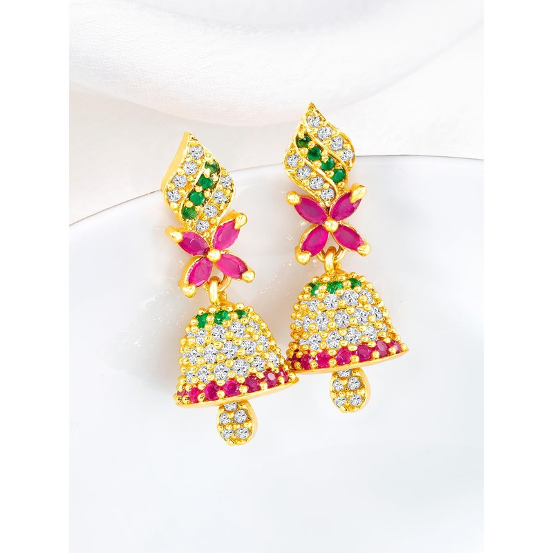 Aheli Cubic Zirconia & Rani Pink Green Artificial Stone Studded Jhumki Earrings Jewelry for Women Design 3
