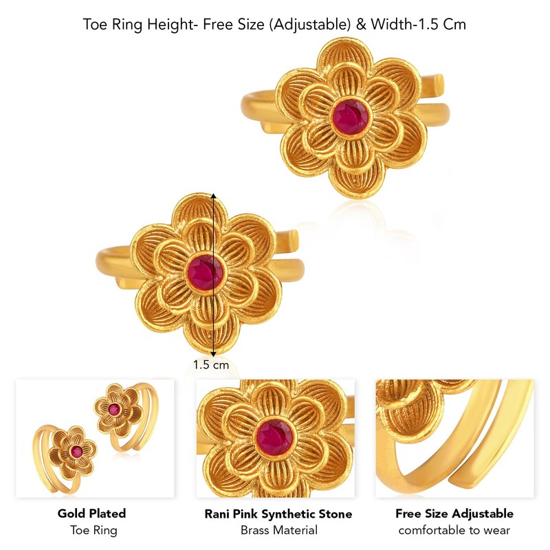 Aheli Gold Plated Rani Pink Synthetic Stone Studded Floral Adjustable Toe Ring Bichiya Jewellery Gift for Women