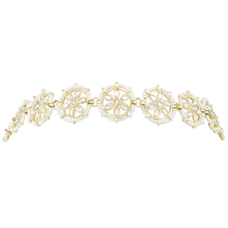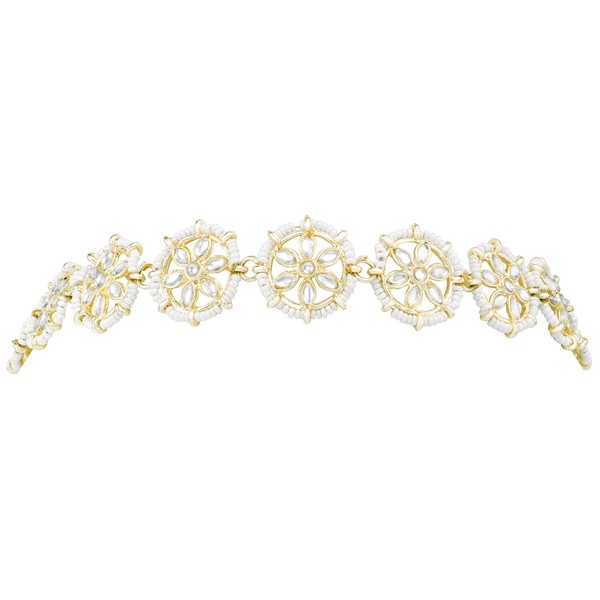 Aheli Gold Plated White Kundan Studded Ethnic Sheeshpatti Matha Patti Sheeshphool Dulhan Bridal Stylish Fashion Jewelry Gift for Women