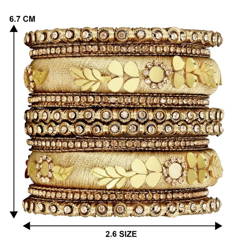 Aheli Silk Thread Fabric and Stone Studded Kundan Chura Chuda Bangles Set Gift for Women