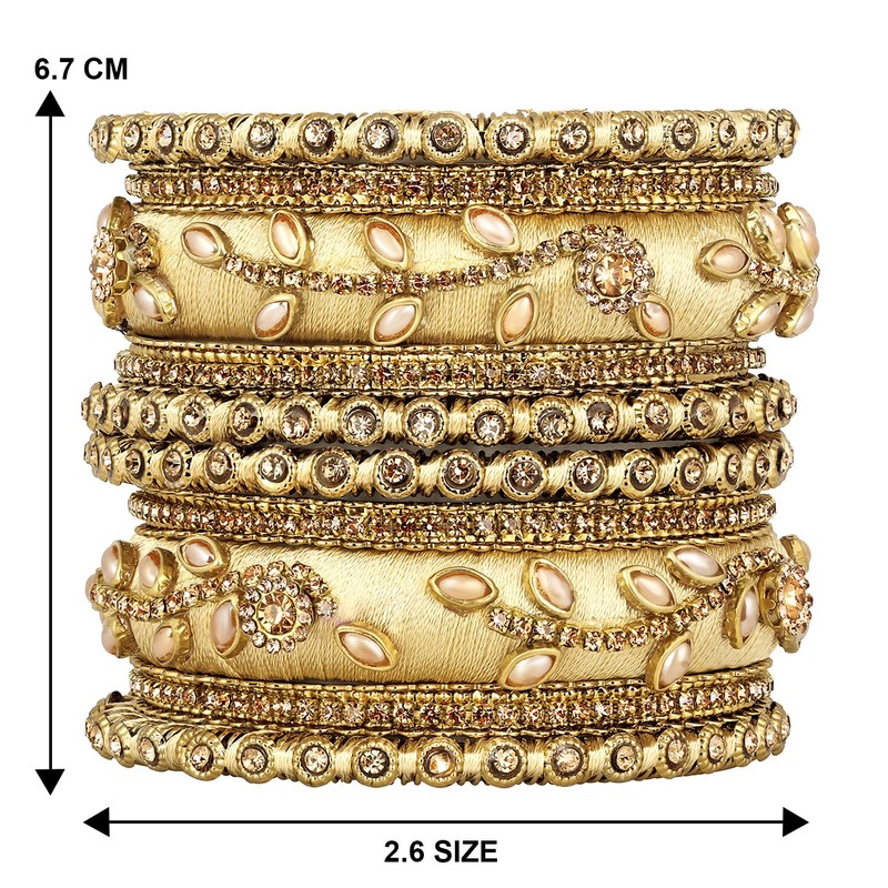 Aheli Silk Thread Fabric and Stone Studded Kundan Chura Chuda Bangles Set Gift for Women