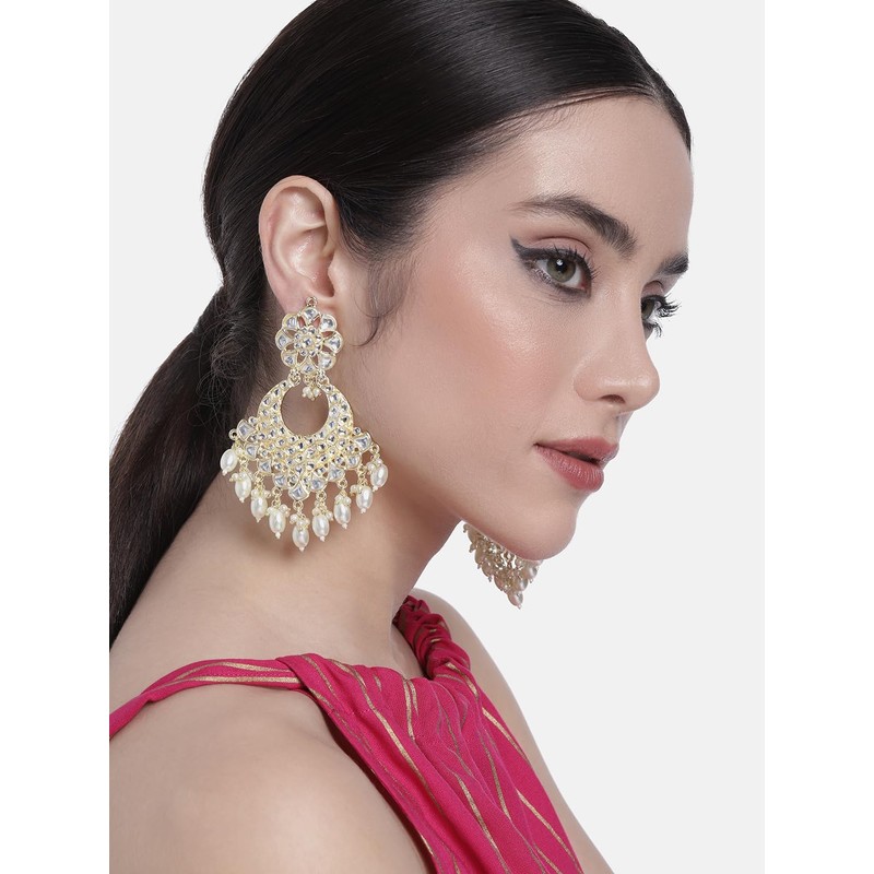 Aheli Traditional White Kundan & Pearl Studded Dangle Chandbali Earrings Ethnic Fashion Jewelry Gift for Women