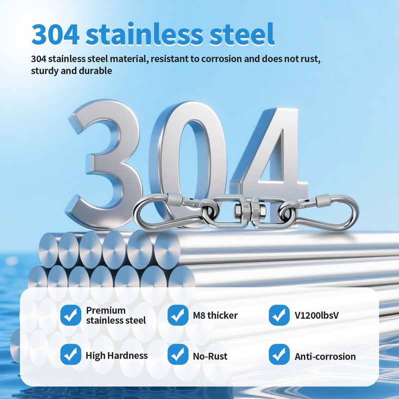 - 【304 STAINLESS STEEL】Swivel ring double ended swivel eye hook are made of premium quality 304 stainless steel materials, which is very strong and corrosion resistant, let you say goodbye to rust, worry about items falling at any time