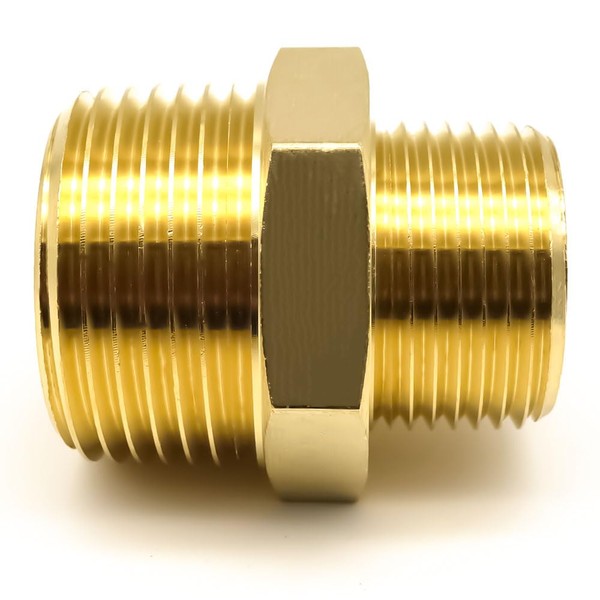 AHFMANG 2PCS Brass Reducing Hex Nipple 1" NPT × 3/4" NPT Male Pipe Fitting