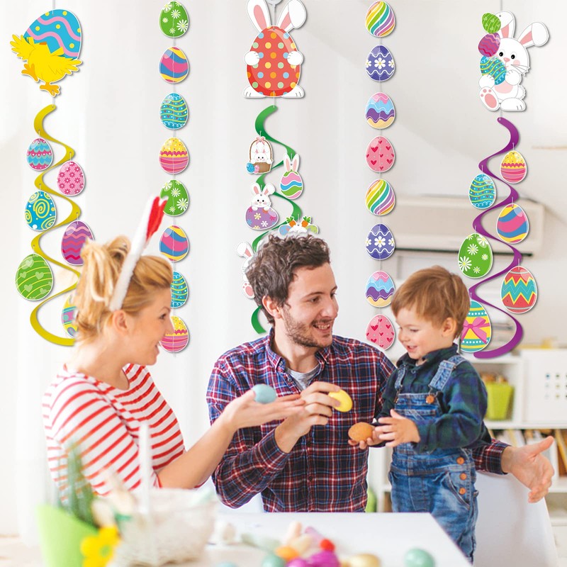 - Easy To Use: Our Easter party decorations can be easily assembled and disassembled. The thick paper on the garlands has double-sided cutouts. The assembly can be completed with the two ribbons attached to the product and then hung at any position. Easter decor with light weight and long ribbons at both ends, you can easily hang them.