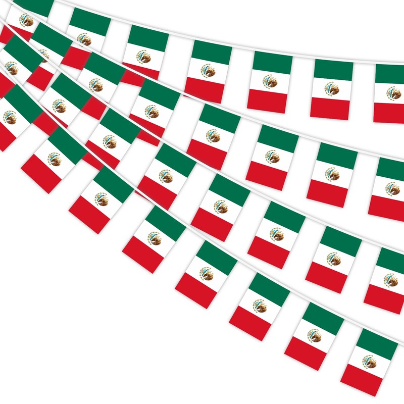 - Specifications: This Mexico flag bunting contains 30 small flags, size of the small flag is 14 x 21 cm / 5.51 x 8.26 inches (W x D). The total length of this pennant banner is 32.8 ft/10 m, which is long enough for decoration.
