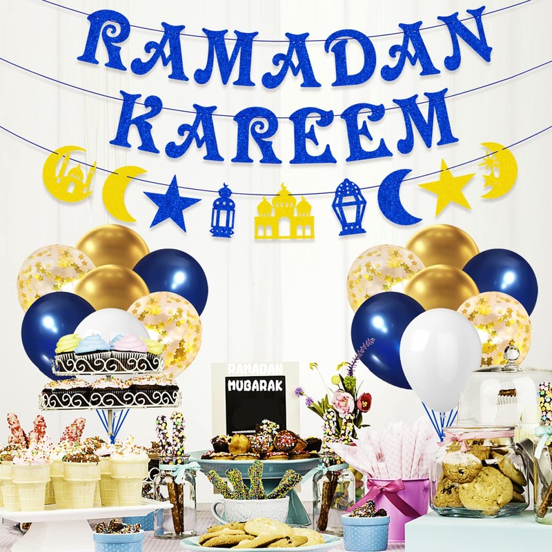 - 【Simple Assembly】: The Ramadan decoration set is pre-assembled and ready to hang to create a funny Ramadan party. The delicate Ramadan Mubarak banner is composed of glitter thick paper. The blue and golden colours look wonderful, shining in the light.