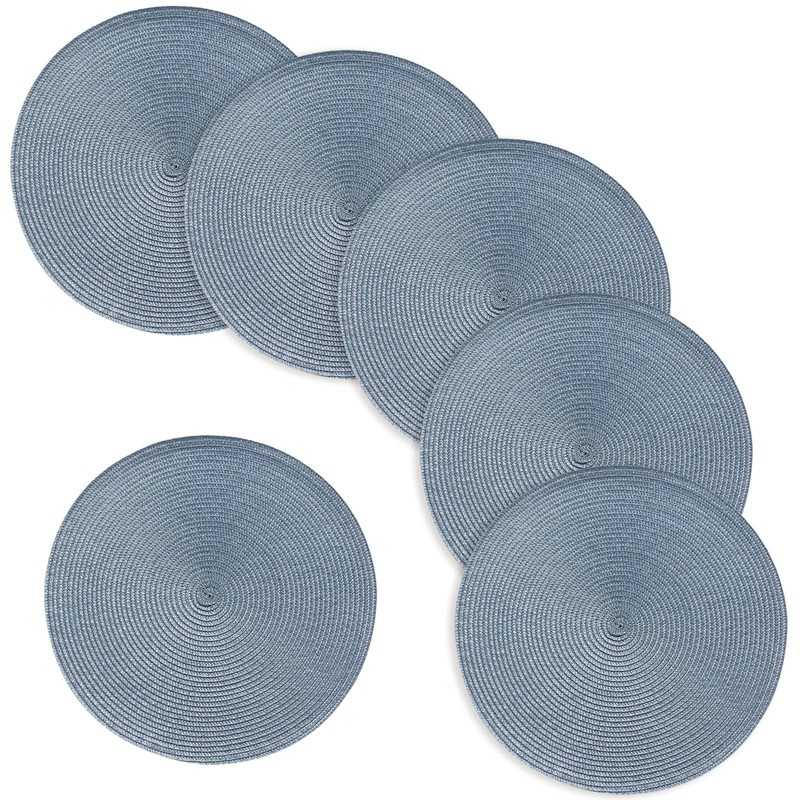 AHHFSMEI Round Braided Placemats Set of 4 Round Table Mats for Dining Tables Natural Woven Heat Resistant Place mats 15 Inch (Light Blue,4)