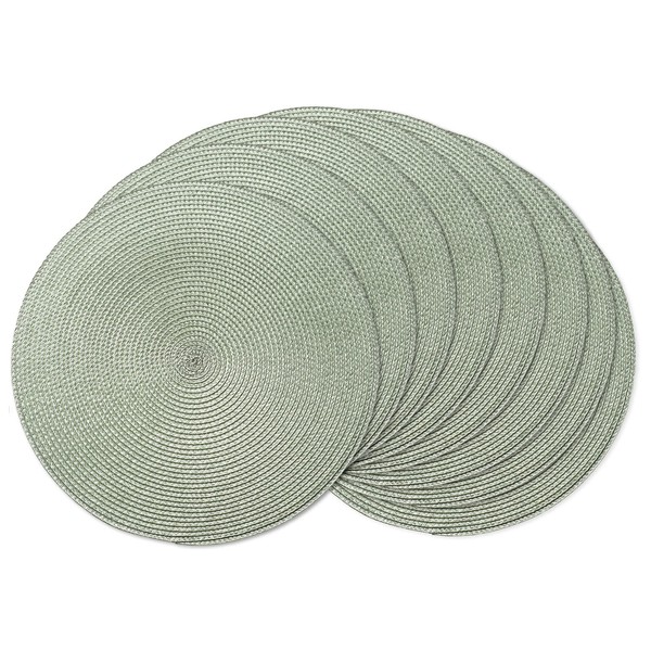 AHHFSMEI Round Braided Placemats Set of 8 Round Table Mats for Dining Tables Natural Woven Heat Resistant Place mats 15 Inch (Fog Green,8)