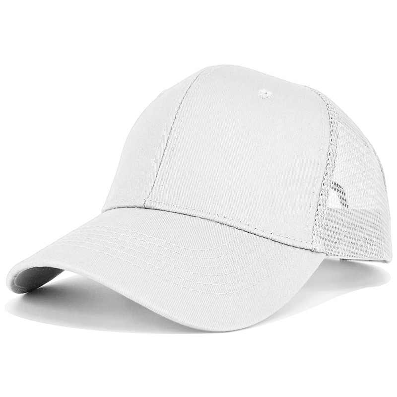 AHLPO Unisex Trucker Cap Mesh Adjustable Baseball Cap Classic Snapback Cap Baseball Cap Breathable Mesh Baseball Cap for Men and Women, White, Unit size