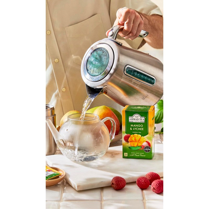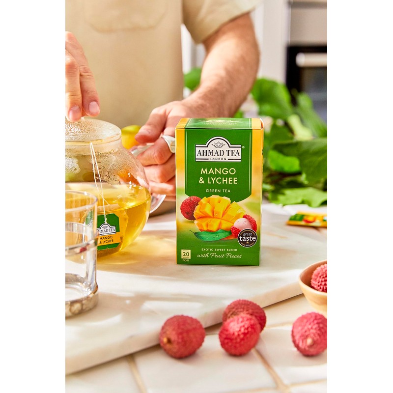 Ahmad Tea Green Tea, Mango & Lychee Teabags, 20 ct (Pack of 1) - Caffeinated & Sugar-Free