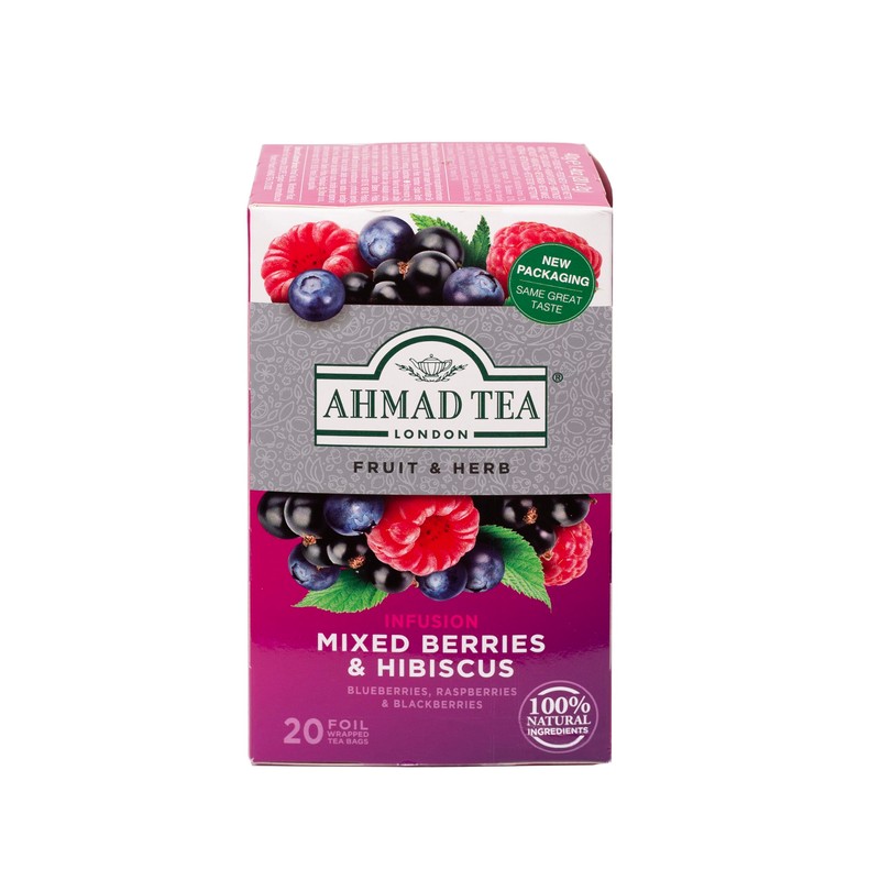 Ahmad Tea Herbal Tea, Mixed Berries & Hibiscus Teabags, 20 ct (Pack of 1) - Decaffeinated & Sugar-Free