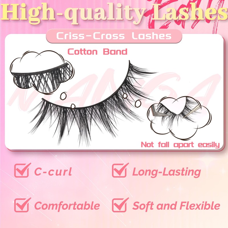 - Natural Manga Lashes: These manga lashes use a unique spiky design and look very natural. They can be worn with everyday or cosplay makeup, and the character of anime lashes can add a beautiful new definition to your eye makeup!