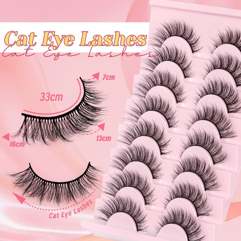 Ahrikiss Lashes Wispy False Eyelashes Natural Look Cat Eye Lashes 8 Pairs Faux Mink Lashes Lightweight Eyelashes Kit with Glue and Tweezers (Ethereal)