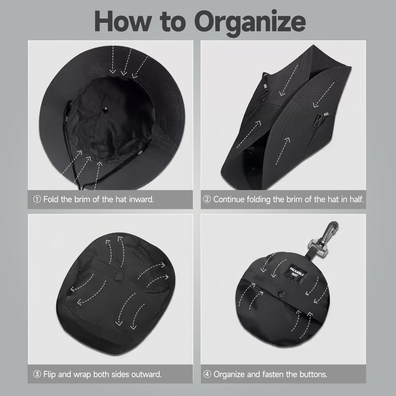 ▲ Designed for convenience and performance, the foldable bucket hat can be easily packed into your bag or attached to your belt using the built-in hook. An adjustable chin strap ensures a secure fit in windy conditions, while the one-size design comfortably fits most adults with a head circumference of 21 to 23 inches.