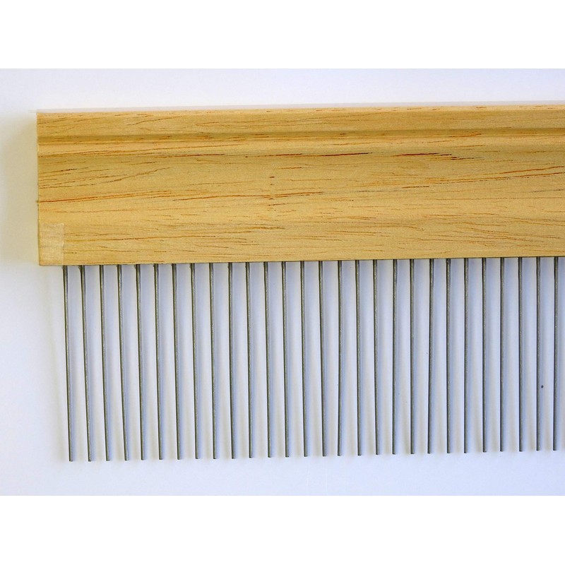 Der Kamm verfügt über rostfreie Edelstahlnadeln und einen stabilen Holzgriff, der angenehm in der Hand liegt und ein exaktes Arbeiten ermöglicht. Seine kompakte Länge von 35 cm macht ihn perfekt für gängige A4- und A3-Marmorierwannen.
