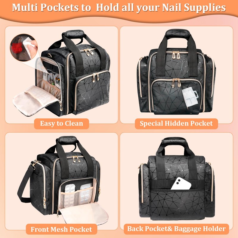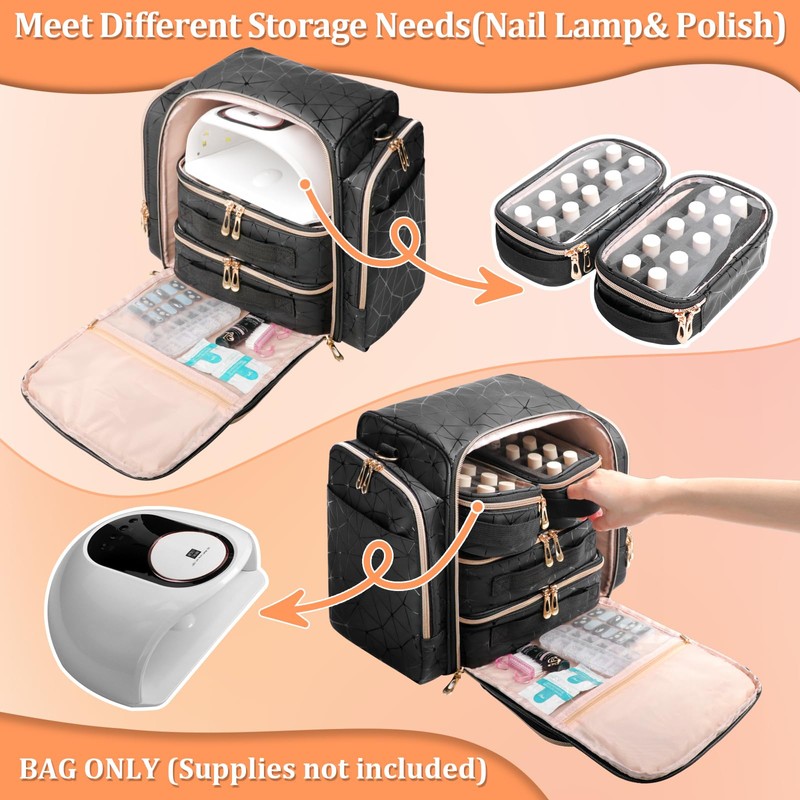 - 【3 Convenient Carrying Options】Nail bag organizer case comes with a removable padded shoulder strap, which is adjustable in length for comfortable carrying. It has double carrying handles with Velcro at the top, while the back luggage strap design making it convenient to carry. Portable for travelling or nail salon, a great gift for nail lovers and nail technicians.