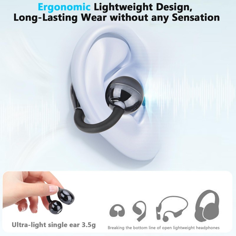 AI Translation Earbuds Real Time, 144 Online Language Translator Earbuds, 3 in 1 Wireless Bluetooth Headphones Noise Canceling, Lightweight Earclip Headphones for Running, Black