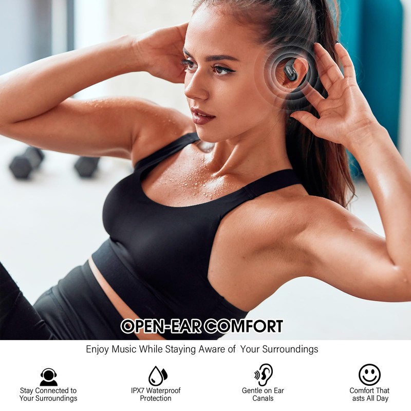 - True Open-Ear Design: QXUFV open ear earbuds are crafted to rest gently around your ears, keeping your ear canals completely open for a truly comfortable and secure fit. Made from ultra-lightweight, skin-friendly materials and weighing just 9.5g, wireless earbuds are so light you can wear them all day without feeling a thing. Say goodbye to ear fatigue and enjoy effortless, all-day comfort.