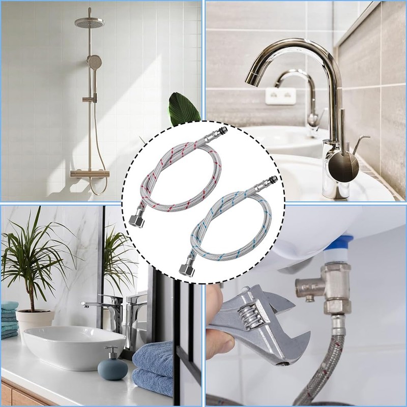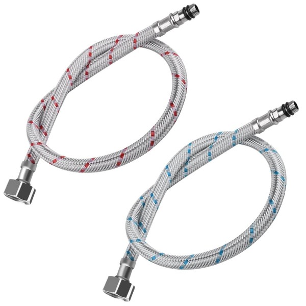 - Wide use: this pair of stainless steel hoses are used to provide hot and cold water, widely suitable for water sinks, water heaters, toilets, residential and commercial taps, etc. Red hose for hot water and blue for cold water. Notes: The G3/8 x M10 connections of flexible hose comply with the European standard. And it cannot be used as an extension tube. Please check the size information before ordering.