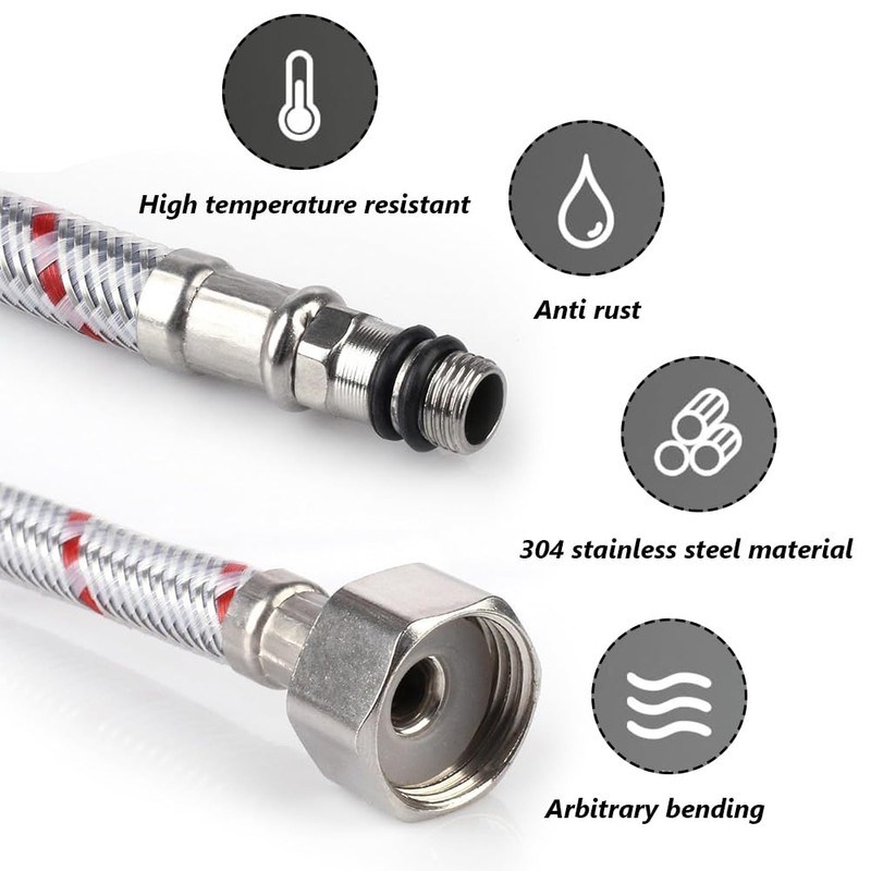 - High-quality materials: tap connection extension is made of 304 steel wire mesh, leak-proof, rust-proof, pressure-resistant, corrosion-resistant, cold and heat resistant, abrasion-resistant, flexible hose fitting with smooth surface, good bending effect and softness, strong and durable. Tap hose temperature resistance from -10 °C to +90 °C.