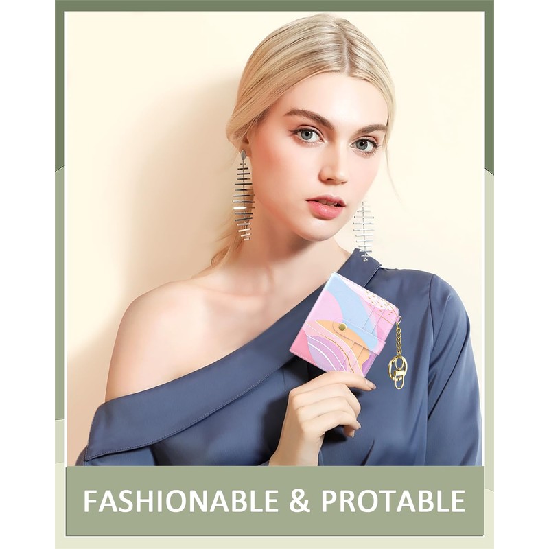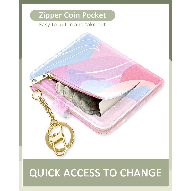 - Slim and Protable Size: This small wallet for women measures 4.45 x 3.74 inch, and only 0.59 inch thick, it is extremely convenient to be carried around in your front or back pocket. Comes with a extra keyring, works great on a lanyard or keychain