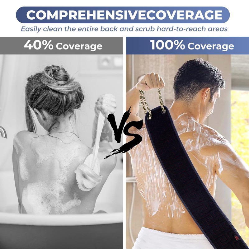 - Larger Coverage & Easy Reach: Back Scrubber 38.5 inches long, this back scrub covers a wider area and easily reaches tough spots. Its ergonomic handles ensure effortless use for a deep clean without straining. Compared to traditional back brushes, our back scrubber for men is wider and longer for easier daily use.