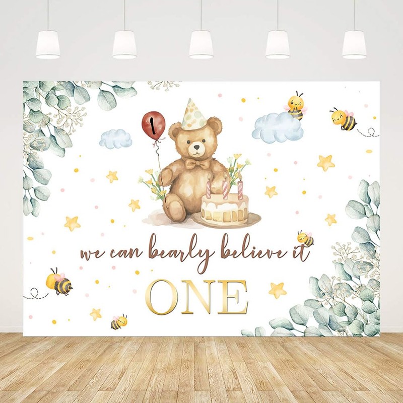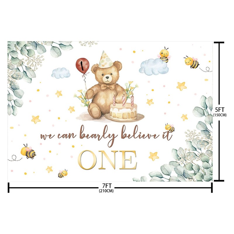 - Bear 1st Birthday Backdrop: You will receive 1pcs we can bearly believe it one backdrop, enough for your home decoration and photo needs.(Send by folded, clips and stand kits are not included).Size: 7 x 5 ft / 210 x 150 cm