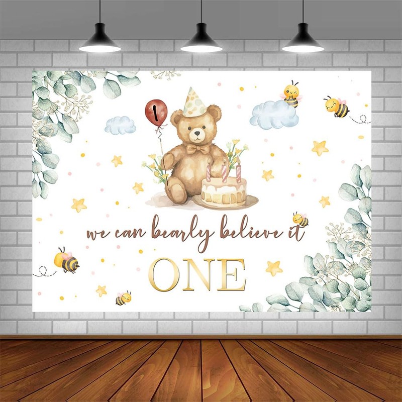 - Unique Design: The we can bearly believe it one backdrop features bear and other elements. The bear 1st birthday banner can enhance the mood of the birthday party, which creates a bright and cheerful 1st birthday party atmosphere
