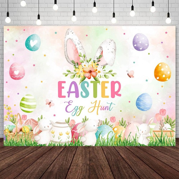 AIBIIN 7x5ft Easter Egg Hunt Backdrop Spring Easter Bunny Rabbit Photography Background Easter Colorful Eggs Grass Baby Shower Birthday Party Decorations Banner Photo Props