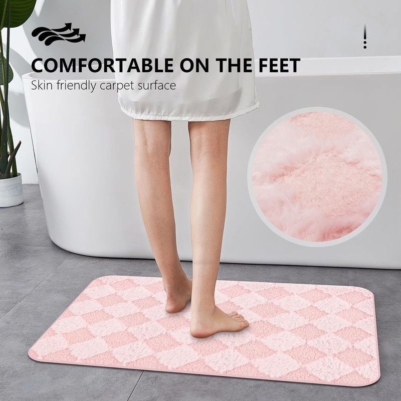 AIBIIN Bath Mat Non-Slip Comfortable Soft Water Absorbent Microfiber Pedestal Rug Simple Bath Mat Pink 50x80cm