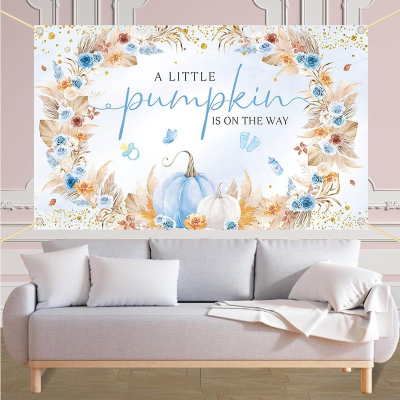 - A Little Pumpkin is on The Way Backdrop : Our Little Pumpkin is on The Way baby shower photography background is fall pumpkin little baby shower themed, with fall as the main background color, perfect for hosting baby shower birthday party