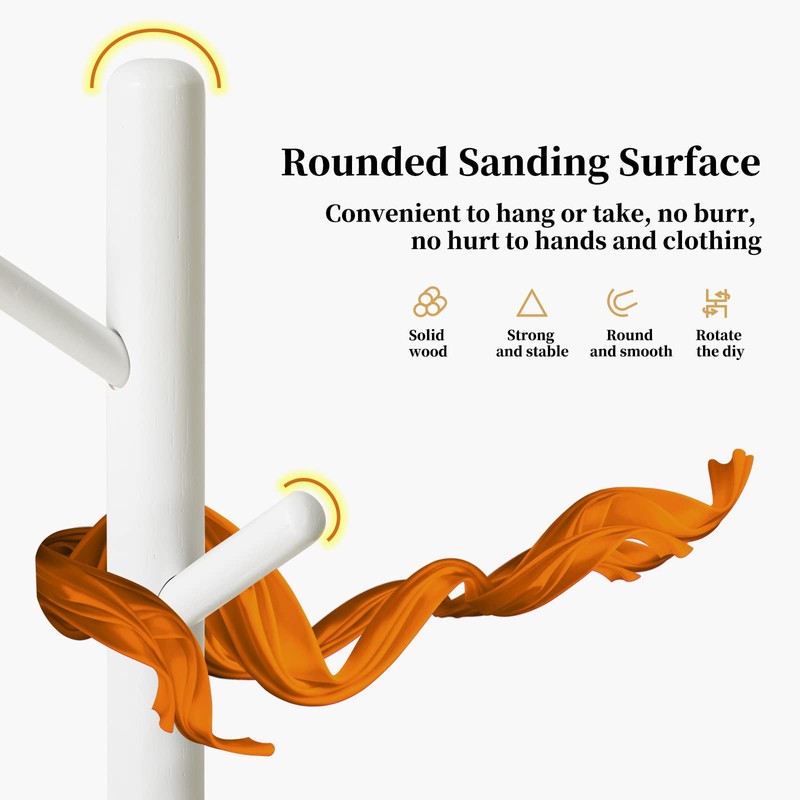 • Healthy Freestanding Coat Rack - Made of natural solid rubber wood. Safe paint, non-toxic. There are white parts label stickers on the wooden parts, and the labels can be blown with a hot air blower before removing, which makes it easier to remove the labels.
