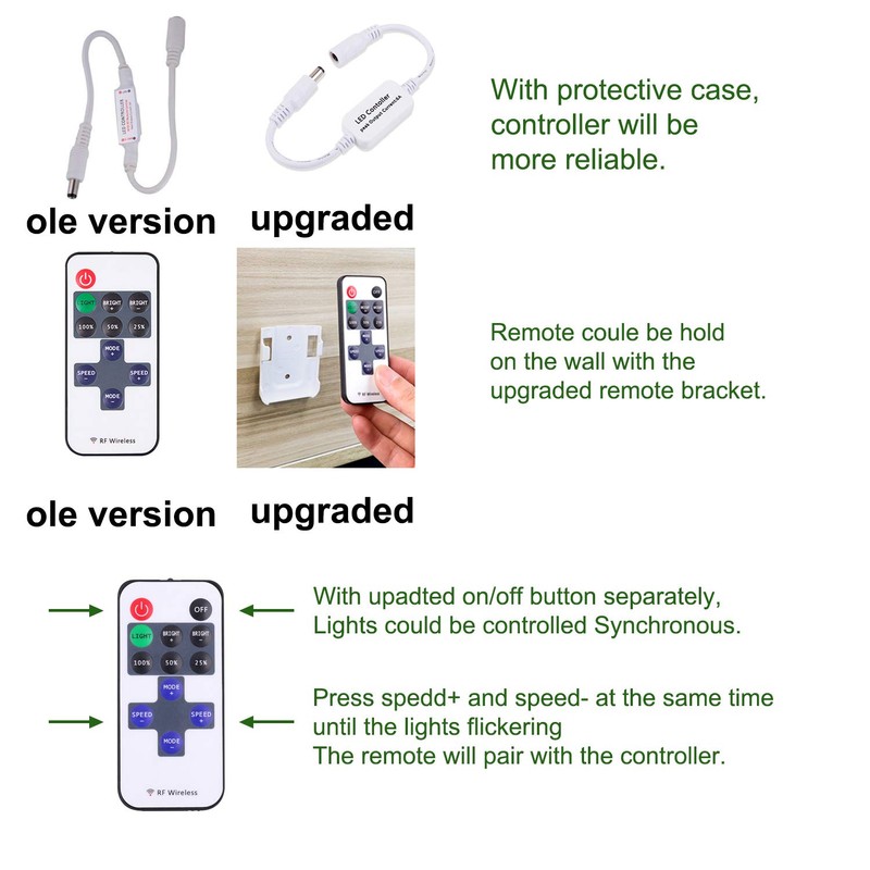 - Dimmable and Memory function: Allow 10 brightness levels by using RF wireless remote controller from 0%-100% setting, it¡¯s remember the last setting as always, Easy and Convenient to control the plug in corded under cabinet lighting.