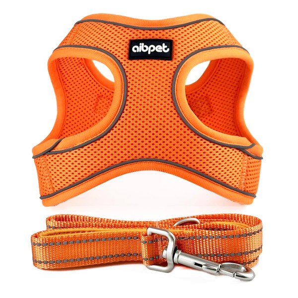 AIBPET 犬 ハーネス リード付 小型犬 柔らかい 軽量 中型犬 通気性 猫 耐久性 犬用ハーネス 訓練用 大型犬 引っ張り防止 反射材料 首輪 弾力性 調節可能 リード 介護 ペット用品 付けやすい (orange, S)